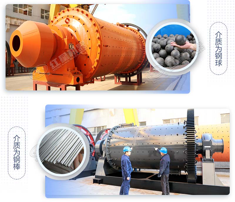 钢渣球磨机研磨介质为钢球,钢渣棒磨机研磨介质为钢棒,以点接触改为线接触,并可根据钢渣特性配用合适的研磨钢棒。该设备研磨出料粒度更均匀,产量更好。